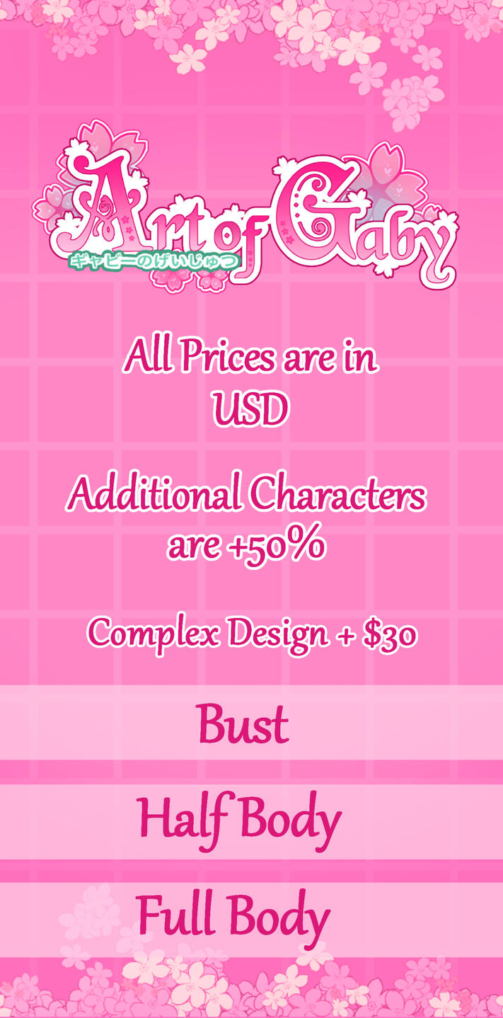 Payments will be made with PayPal (Cashapp is also accepted) All prices are in USD, so be mindful of conversions.